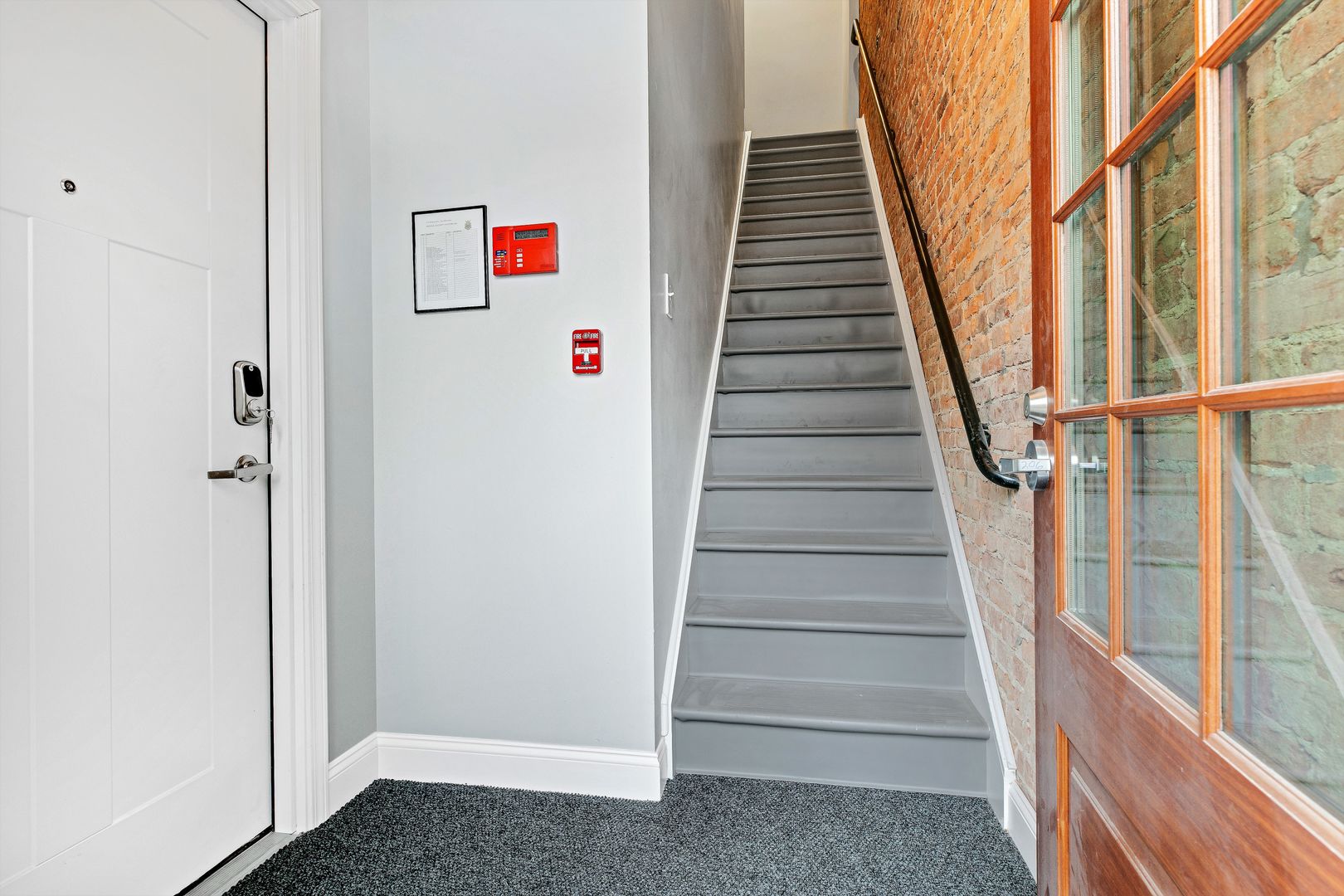 Highly secured building with high tech fob entry system and intercom.