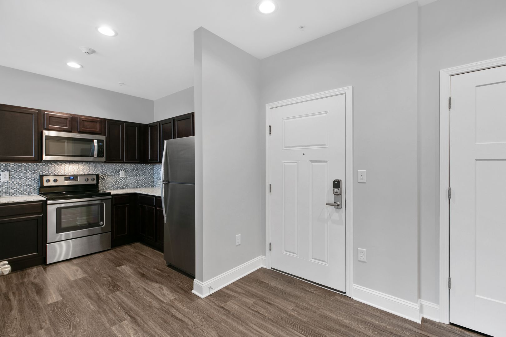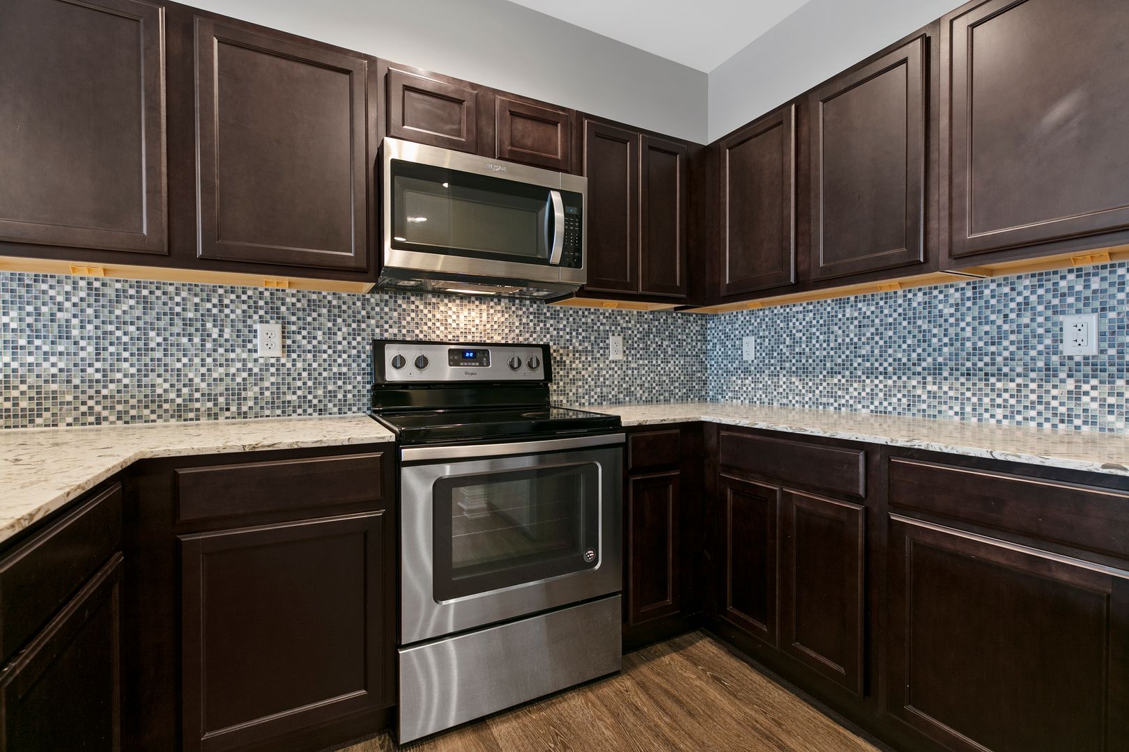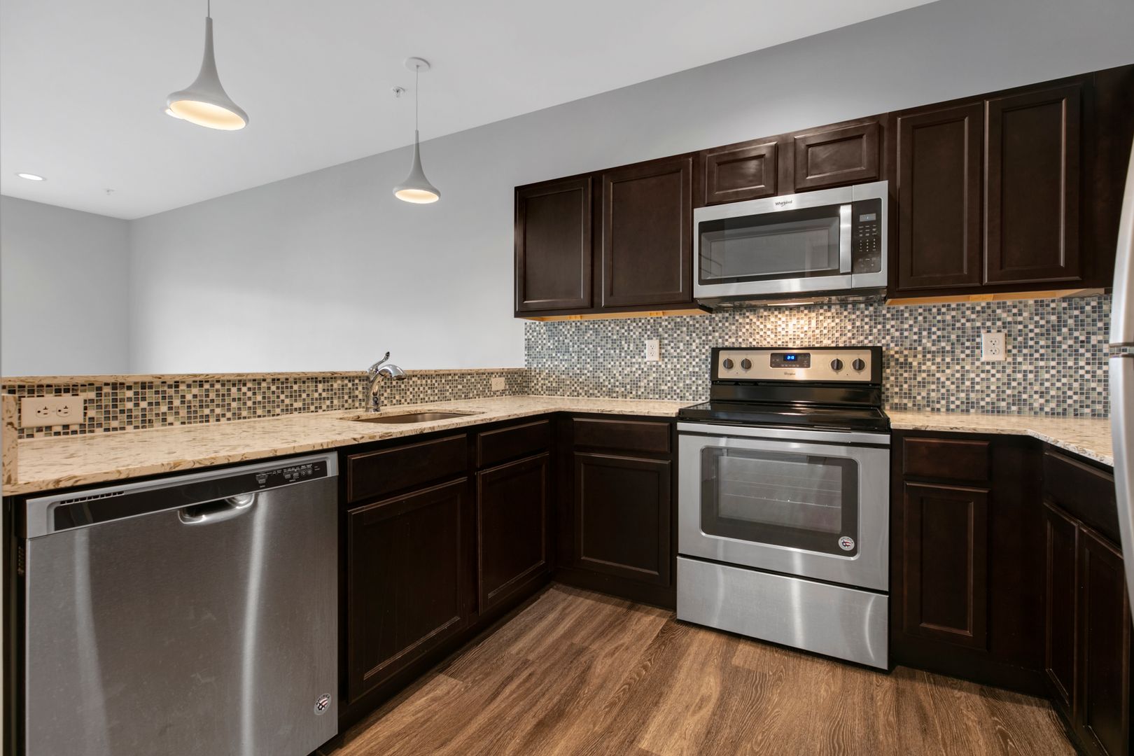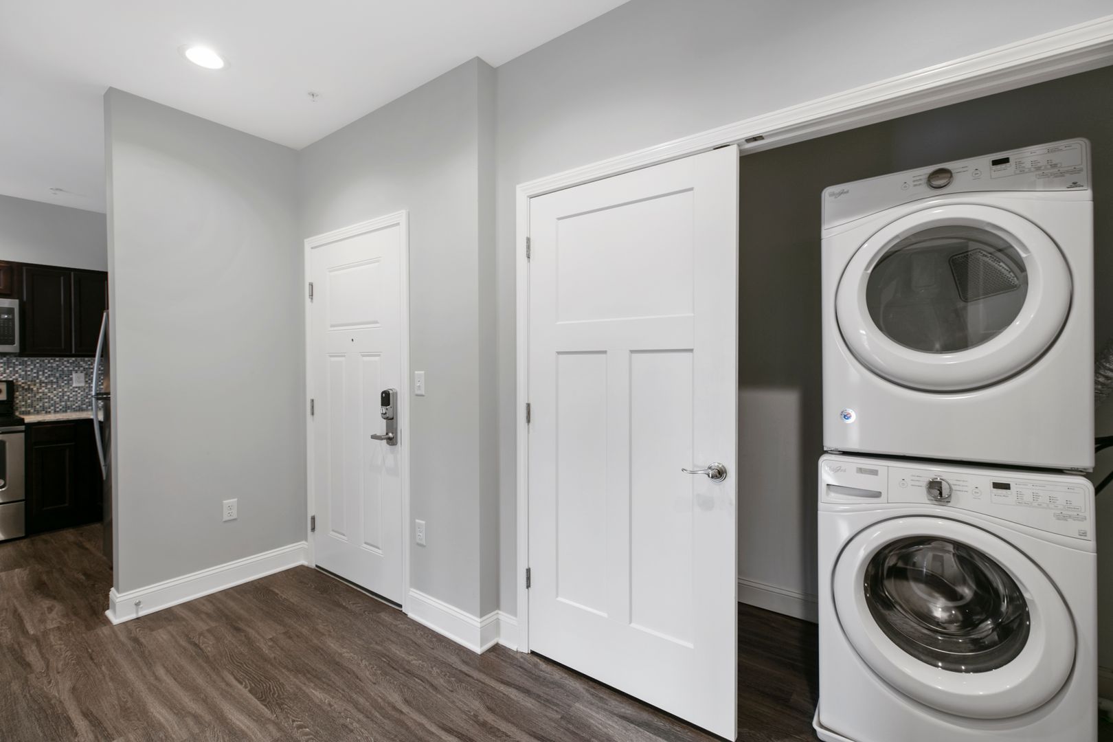Granite counter tops, stainless steel appliances. Washer/Dryer in unit.