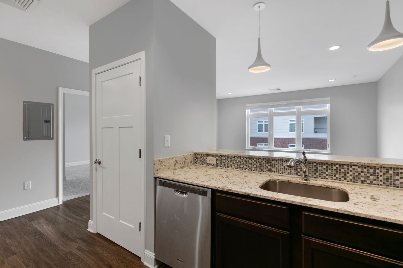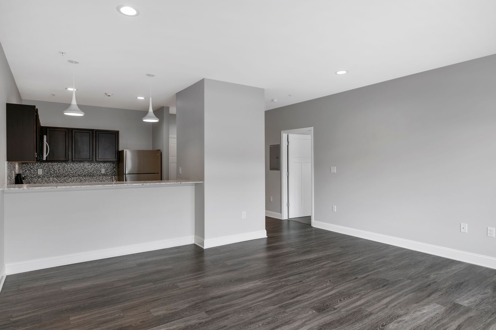 Beautiful open floor plan with breakfast bar.