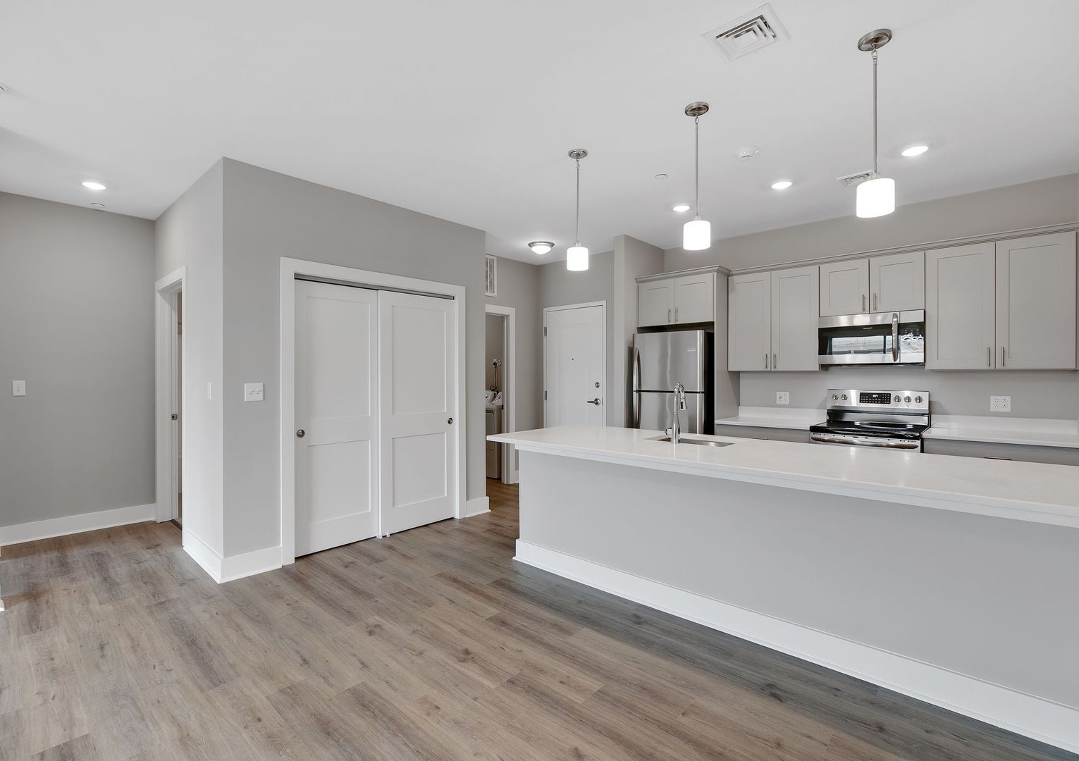 Our largest 1 bedroom apartment walking distance to Albany Medical Center and Washington Park. Gorgeous open floor plan. This unit is front facing; offering huge sliding glass doors that soaks the unit with sunlight! Featuring granite countertops, stainless steel appliances, washer/dryer in unit, keyless entry, massive closets and more.