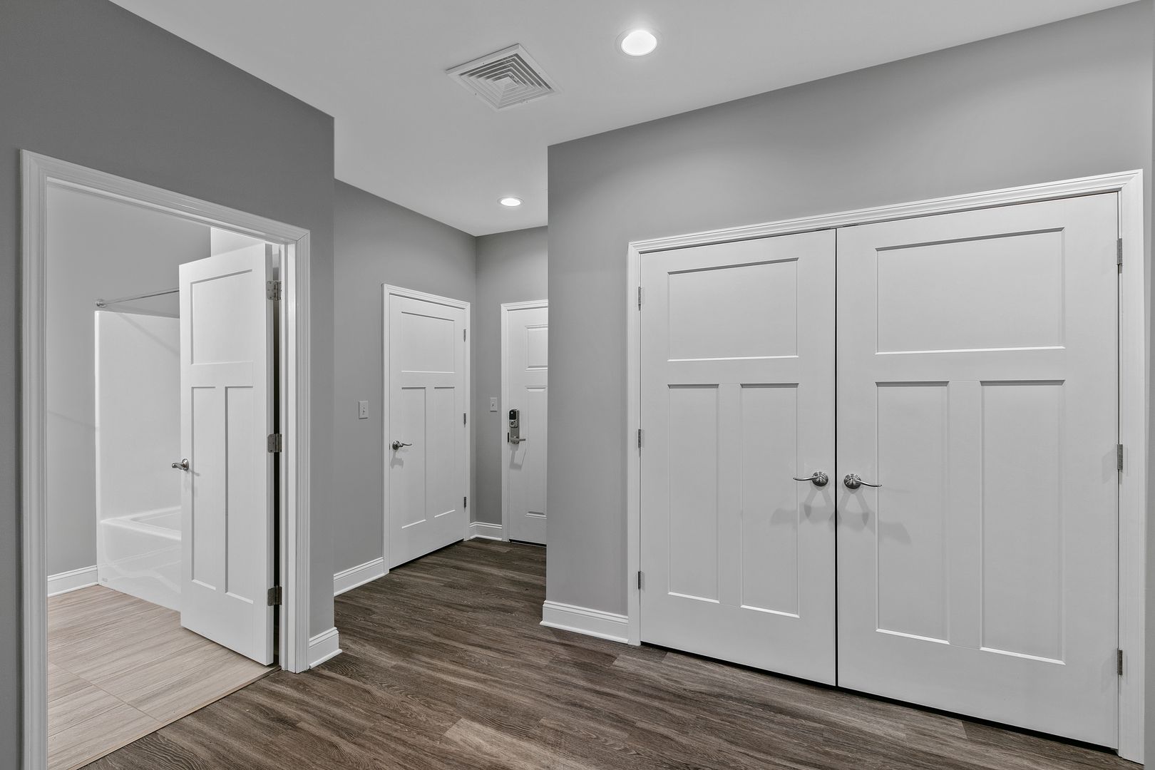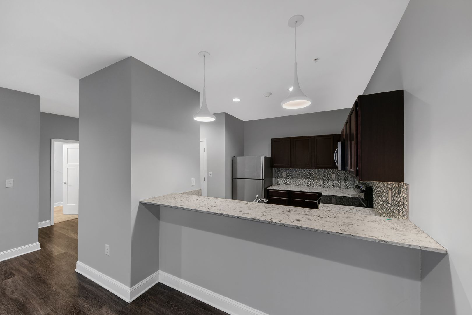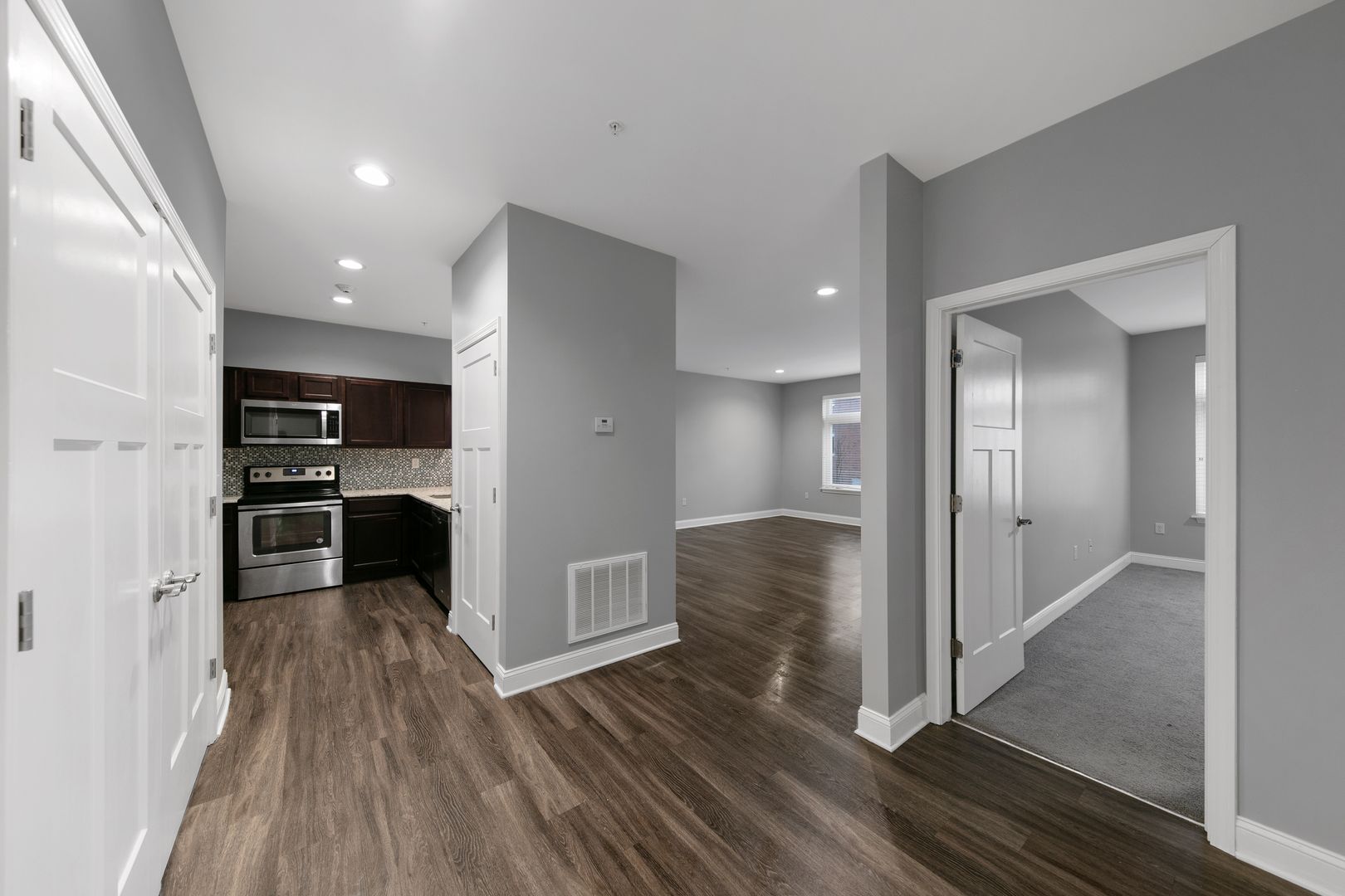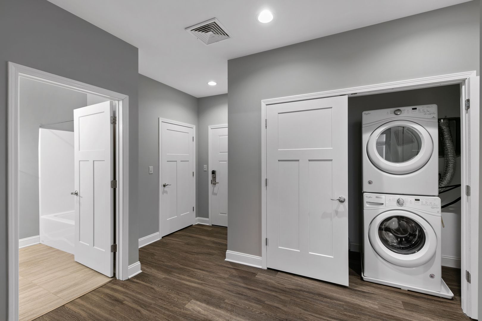 and tasteful backsplash tile, oversized windows with tons of natural light, laundry room in unit! All overhead lighting is on dimmers, oversized walk in closet in entryway, bedroom closet lights up when you open closet doors.
