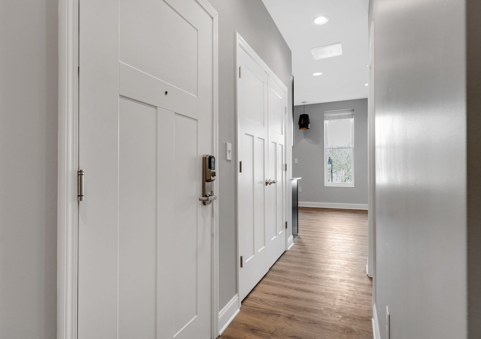 Large windows throughout drenching the unit. custom plank blinds in each window to control your lighting.