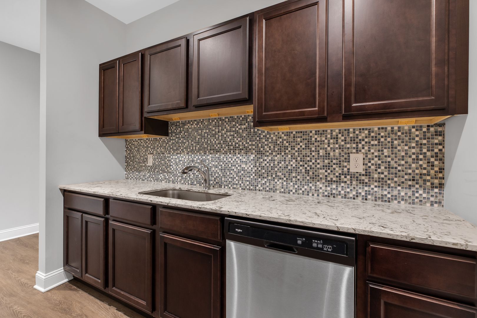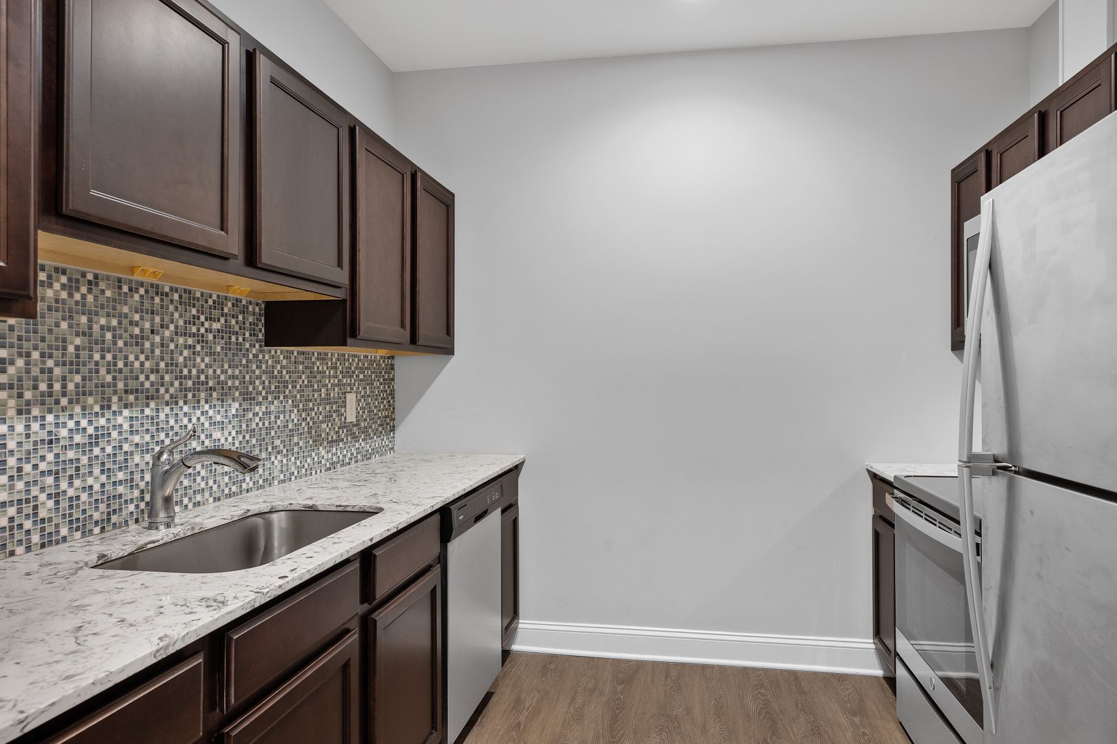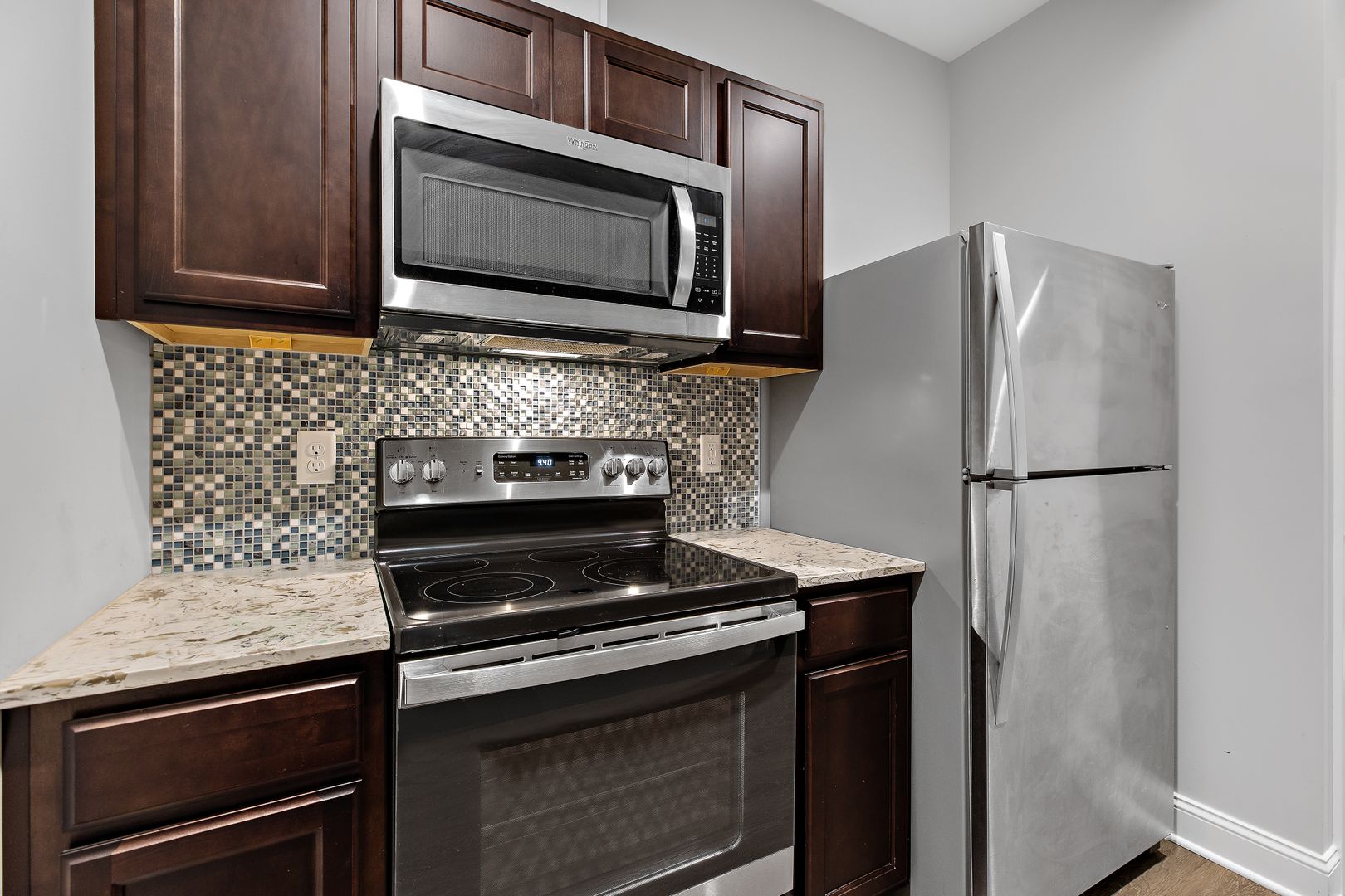 Granite counter tops, plank flooring, stainless steel appliances. Huge windows in living space make this unit bright and inviting.